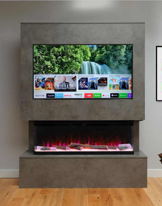 This media wall is a stunning, energy-efficient centrepiece for any living space, featuring customisable flame effects, remote/app controls, and over 1000 colour combinations.